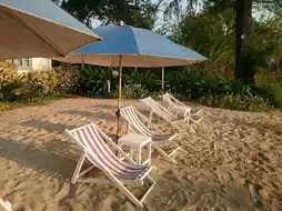 .. It is a bungalow-style resort on a private beach with white sand and sea water that you can swim in. It is very quiet and private.