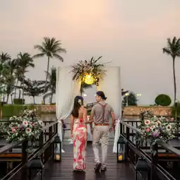 It's the month of love now. Wan and Fuk would like to take everyone to relax and unwind in a romantic atmosphere, not far from Bangkok, at a luxurious accommodation on the beach in Hua Hin-Cha-am. This is a 5-star luxury hotel with an area of 112 rai and a beach of 400 meters. The hotel has just been completely renovated, including the rooms, the building, and the swimming pool, to be more modern, while still maintaining its colonial style.