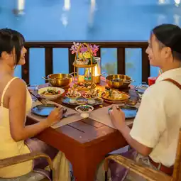 The special thing about our stay this time is that the hotel has arranged a Valentine's Day Dinner for us to try before anyone else, with the Valentine's Jetty Romance set, arranged at the hotel's pier that juts out into the middle of the lake. The view is the best, and the sunset is very clear. Dinner starts from 17:00-21:00, with 4 courses served with Sparkling Wine. This dinner will be available only on February 13-15, 2025. Hurry and book now.