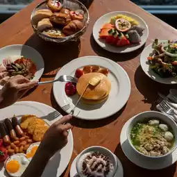 For breakfast, we ate at The Deck restaurant, located in the Lobby building. The food line was magnificent. There was a huge selection of food and everything was delicious.