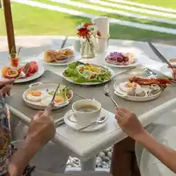 The restaurant here is called Deva Bistro, offering all-day dining from breakfast buffet to late-night meals. Personally, I really like the morning buffet. There are Thai foods such as grilled pork, rice soup, and Thai desserts such as Khanom Chan and Khanom Krok.