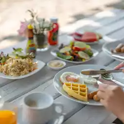 The restaurant here is called Little Sea Hua Hin, located on the beach. It offers all-day dining from breakfast buffet to dinner. And nearby is a cafe