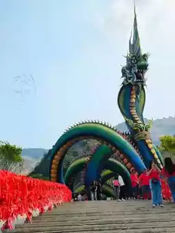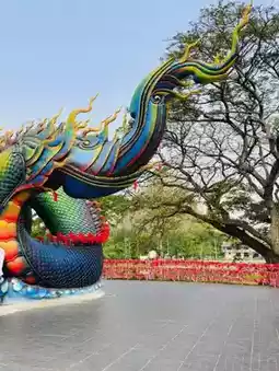 💯 Wat Tham Chaeng, Phetchaburi Province is a temple famous for its magnificent Naga statue, the largest in Thailand, "Phaya Phetkiri Mahamuni Sri Suthonakraj", which is 277 meters long. The Naga statue is beautifully colorful and gracefully rolls along the mountain. Inside the temple, there is also a cave with beautiful stalactites and stalagmites for you to see. This makes this temple a popular tourist and worship destination for many tourists and devotees.