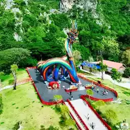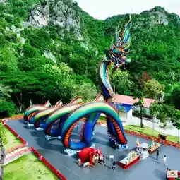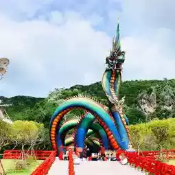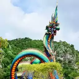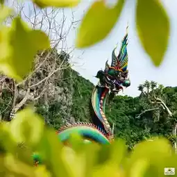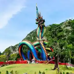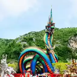 In addition to the beautiful sea, Phetchaburi Province also has a beautiful Naga statue named Father Pu Phaya Phetkiri Mahamuni Sri Suthonakraj. It is the first Naga in Phetchaburi Province and the largest in Thailand. It is about 31 meters high, with a diameter of 2 meters. The length of the body is in the shape of an Unalome Yantra. There are 9 holes to pass through. It is 227 meters long. It is a beautiful sapphire or green color like the wings of a beetle.
