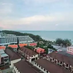 Located in the north Cha-am area, close to the beach, walk from the hotel about 50 meters to the beach. The hotel is large, has many rooms, is a tall building with a high angle view of Cha-am. There is a swimming pool on the ground floor, the water is clear, and there are few people playing.