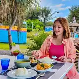 There is a seaside restaurant, "Sand Restaurant". The atmosphere in the evening is very good. You don't have to go anywhere. You can eat here. In the evening, don't forget to stop by and chill at the seaside bar.