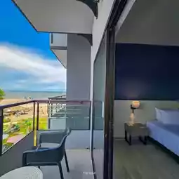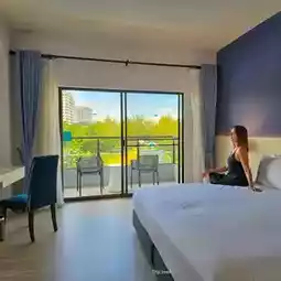 There are many types of rooms to choose from. Wan stayed in a Deluxe room, a spacious room, able to see the view of the swimming pool and the sea from the balcony in front of the room.