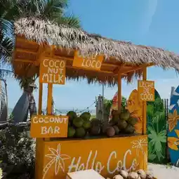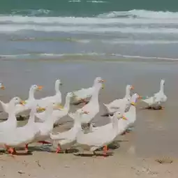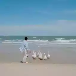The cafe is decorated in a full summer theme, bright colors, and most importantly, the highlight of this place that made us have to come is the flock of little white ducks in the cafe and will come out to walk around the cafe and along the beach. It's so cute🪿