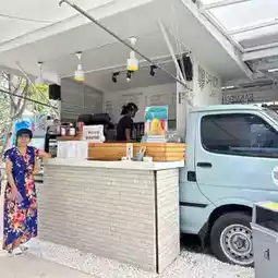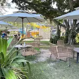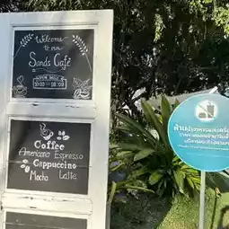 A café with a seaside atmosphere, cool breeze, hidden in Centara Life Cha-am Beach Resort Hua Hin. The café offers desserts, drinks, fruit smoothies, hot tea, coffee, starting at 55 baht, and my favorite is frozen flavors at 60 baht. The drinks are not expensive, delicious, and have a good taste. The atmosphere is like a garden café with a view of the sea and fine white sand. There are many places to sit, including swings and many photo spots. It is comfortable to sit on a lawn where children can run around.