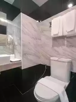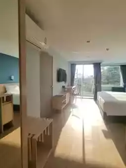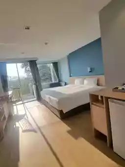 The rooms are clean, spacious, with balconies and windows, making you feel airy. There are sofas to sit on by the glass windows and there are also complete amenities.