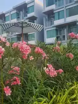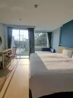 This hotel is located on Cha-am Beach. Just cross the road and you will reach the beach. The hotel building is in a U shape facing the beach, allowing you to see the sea view. The lobby and parking lot are located at the back of the building, on the opposite side of the beach. Parking is available around the hotel and there is also a parking lot of the hotel not far away. There are security guards to look after safety and direct cars.
