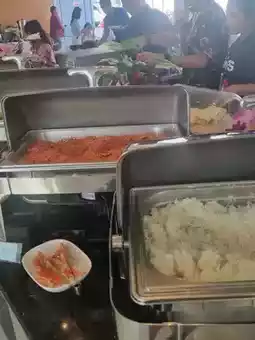 The breakfast restaurant is located in front, right on the road called the beach. There is a variety of food to choose from, focusing on Thai food. There are also breads, salads, hams, and sausages.