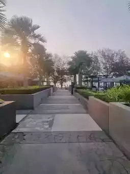 The atmosphere outside the hotel is shady, arranged as a garden and flower garden. There are 2 swimming pools on the left and right sides. The children's zone has a slide, while the other side does not. The swimming pool faces the beach.