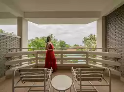 🌳 This place is divided into 2 zones. We chose to stay in the Regency room, a large, spacious room, decorated in colonial-style white and blue tones, clean and comfortable, with a balcony overlooking a shady garden, allowing us to breathe in the fresh air to our fullest.