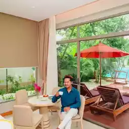 It connects to the large shared pool of the Lagoon Pool Villa in this zone, offering exceptional privacy.