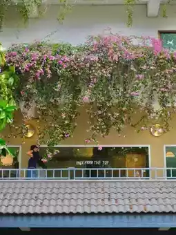 Just looking at the storefront is enough to captivate you. The yellow walls and pink bougainvillea flowers are so adorable! 🌸🌸 The interior is decorated in a vintage style with wooden furniture. We, as photography enthusiasts, absolutely love it! You can pose in every corner.