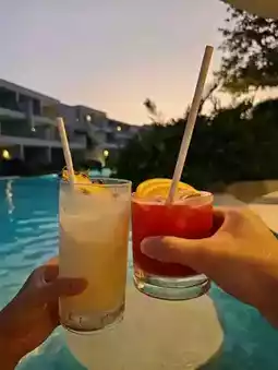 Welcome drink: A fragrant and sweet bael fruit juice. Breakfast, afternoon tea, and refreshing palm sugar drinks were delightful, while the evening cocktails were quite good. Overall, it’s a chill place to stay. However, there were a couple of minor issues during our visit: the tide was high, so there wasn’t much of a beach, and the swimming pool area was quite hot from midday to afternoon. You’d need to wait until late afternoon to comfortably enjoy the pool.