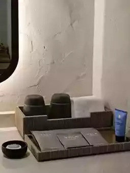 The amenities here are from Panpuri, provided in small bottles, with additional items offered during the evening turn-down service.