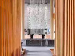 Guests are warmly welcomed by a wide entrance featuring blue-accented walls and golden bird motifs, creating an air of grace and serenity right from the first step. A cascading water feature adds to the visual and sensory appeal.
