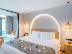 Infinity Pool: A main pool with a swim-up bar and views of the beach. Wonder Wood Kid's Club: An indoor and outdoor play area for children, featuring activities inspired by nature. Organic Farm: Guests can visit the farm to learn about sustainable farming practices and interact with animals. Yoga Classes: Bespoke yoga sessions held on the beachfront lawn, offering a peaceful setting for relaxation.