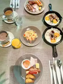 🌴 The beauty of the hotel feels like it came straight out of a painting. If you're not too lazy, you could take photos at every corner. Breakfast, dinner, and Happy Hour are all fantastic. You could spend your entire trip at the hotel without needing to go anywhere else. My partner and I barely left the hotel because it had everything we needed. I especially loved their breakfast buffet—it had a wide variety of options and was delicious. For A la carte meals, they even have a chef preparing them for you.