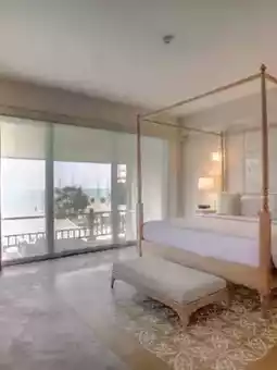 The rooms here are exquisitely decorated, and each has a private balcony with stunning garden or ocean views. There's also a long communal pool that stretches along the beach, allowing you to swim and enjoy the sea view, a popular spot for photography.