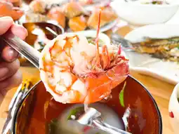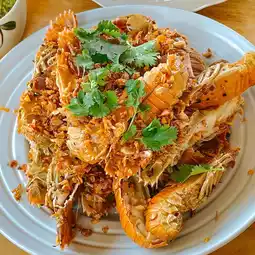 This restaurant is renowned for its daily fresh seafood, including shrimp, shellfish, crabs, squid, and fish, all large and fresh, delivered directly from local fishermen. Recommended dishes include the "Fried Mantis Shrimp with Garlic," fried to perfection, crispy on the outside and tender on the inside, with an incredibly fragrant aroma that's almost impossible to put down. 🦐 Or, try the "Squid Stir-fried with Salted Eggs," a rich and flavorful dish coated in a smooth salted egg for a perfectly balanced flavor.