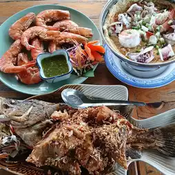 Serving delicious and affordable Thai, Chinese, and Western cuisine, and seafood, it's located just 1.5 kilometers before Cha-am Beach. The spacious area offers a spacious dining area.