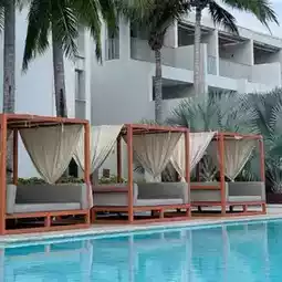 The infinity pool by the sea is a stunning photo opportunity. The poolside bar offers a variety of cocktails and drinks.