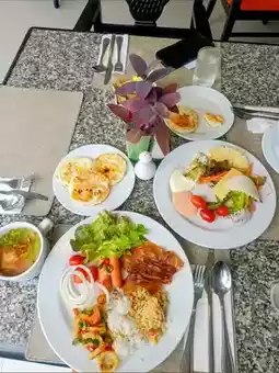 If you wake up a bit late, you might have to wait in line for breakfast because it's really crowded. The staff provided excellent service. Overall, it was good.