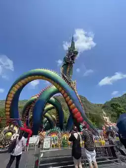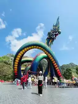 🐉 Come admire the magnificent Naga statue at Wat Tham Chaeng, a must-see attraction for many, especially those who are into spiritual practices and Naga worship. This large Naga statue stands approximately 31 meters tall, has nine passageways, and is 227 meters long. Its sapphire-colored, or the green of a beetle's wings, is dimensional, beautifully detailed, and colorfully magical. Anyone visiting Phetchaburi must stop by to pay their respects at least once.