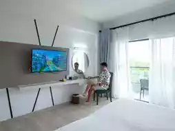 We stayed in a Deluxe Ocean View room. It was a good size, modernly decorated, with a large, comfortable bed. It came with a TV, a refrigerator, and complete amenities. The bathroom had separate wet and dry areas. A highlight was the private balcony with pool and sea views, which is pool access.