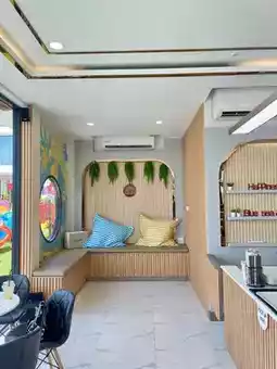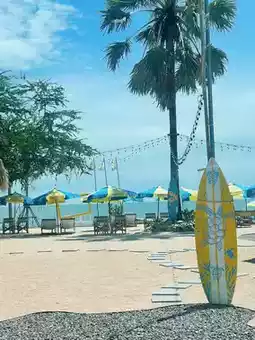 A super chill beachfront cafe with a wide selection of photo spots. 🌊