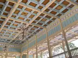 Mrigadayavan Palace is a seaside royal residence of King Rama VI, located in Cha-am, Phetchaburi. The unique feature of this palace is the long walkway leading to the seaside bathing pavilion. The atmosphere is pleasant with a cool breeze, making it very comfortable and not hot at all. Currently, the palace is open to the public for a fee of 90 baht. However, if you wish to visit the royal chambers, an additional fee of 316 baht is required to support the restoration of the palace. Highly recommended for a visit!
