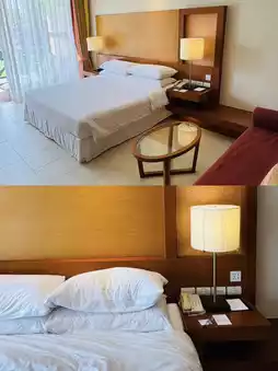 Surrounded by beautiful gardens and a large lagoon pool, the rooms are spacious, with soft beds and cool air conditioning. It's a truly relaxing experience.