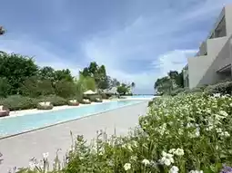 A luxurious 5-star resort nestled between Hua Hin and Cha-Am in Phetchaburi province, surrounded by lush greenery, a sandy beachfront, and a serene, picturesque atmosphere perfect for relaxation. 🕊️🌿