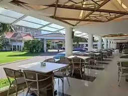🏖🏖 I love the building's design, which resembles a beachfront resort. The vibrant pink bougainvillea plants add a touch of color. The hotel grounds are spacious, making it a great place to take a stroll in the morning.
