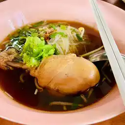 Bitter melon is near Wat Luang Pho Sothon. This famous original shop that many people love for its deliciousness. A large bowl of stewed chicken noodles is served with a lot of food and is not expensive. 🌟This shop's bitter melon chicken noodle has stewed chicken legs, stewed chicken feet and legs. The stewed menu has very soft meat. Chicken noodle soup - plain rice, delicious soup, buffet of fresh vegetables. The shop has grilled pork meatballs and spicy sauce. You must try it!! It's packed with customers every day. The shop is clean and provides good service. Come and try it. It's definitely delicious.