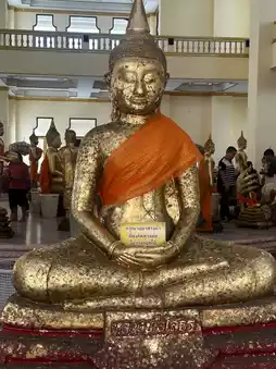 The large ubosot (ordination hall) features stunning modern architecture, crafted from marble and granite, offering a strong and imposing presence. Inside, the statue of Luang Pho Phutthasothon, a meditative Buddha image measuring 1.65 meters across and 1.48 meters high, is enshrined. This sacred image is a symbol of Chachoengsao. The temple grounds are spacious and ideal for worship, merit-making, and religious tourism.