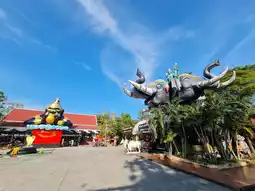Wat Saman Rattanaram is located in Chacheongsao province in Thailand. This temple houses the giant Phra Pikhanet statue also know as Lord Ganesha (Elephant God). The statue is 17 meters tall and 25 meters long. The temple is especially crowded during weekends and thai public holidays. There is a huge Guan Yin statue in the temple compound and a chinese temple too. To get to this temple, you can book a car from Bangkok or take the mini van from Ekkamai station in Bangkok.