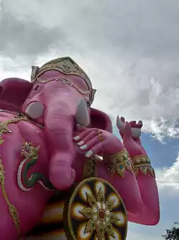 This sacred place is a popular destination for Buddhists and Ganesha devotees, who come to pay their respects and pray for blessings, particularly for success, careers, finances, and fulfillment. A distinctive feature is the magnificent, pink Ganesha statue, approximately 16 meters long, reclining in bliss. This unique statue is the only one of its kind in Thailand. The surrounding area is decorated with various deities and symbols of Ganesha, attracting reverence and belief that those who pay their respects will receive blessings of happiness, success, and prosperity.