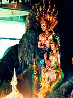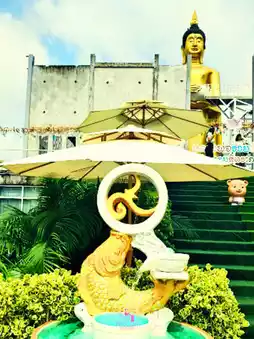 🌺Worshiping at Wat Akhom Sithaphon in Bang Nam Priao District, Chachoengsao Province, is an exciting experience for those seeking merit. This temple stands out for its exceptionally tall, standing Buddha image (said to be the tallest in the world when completed) and is a popular destination for those seeking blessings and blessings from Luang Por Ruay Than Jai. The temple also houses a replica of the underwater city, or Naga Palace, for those seeking spiritual worship, paying homage to Grandfather Phuchong and Grandmother Thongkham. Although the temple itself is still under construction and development, there are numerous merit-making points available, the overall atmosphere is peaceful and shady. Located along the Bang Pakong River, the temple also boasts a cafe where you can relax and feed the fish.