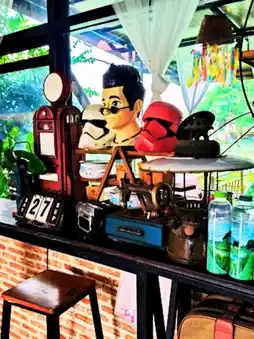 💯Na Ban Rao Cafe is a charming cafe with a rustic, vintage atmosphere nestled amidst nature and rice fields in Chachoengsao Province, making it the perfect place to escape the hustle and bustle and relax. The cafe features lovely décor and offers many beautiful photo spots, such as a bridge, a lotus pond, and various seating areas. In addition to the inviting indoor seating, the outdoor area is a highlight, creating a sense of closeness to nature. The menu offers a wide selection of affordable and delicious food and drinks, along with warm, friendly service and a welcoming atmosphere from the cafe's adorable dogs. This makes this a must-visit destination for nature lovers and those seeking a relaxing and chilled-out experience.