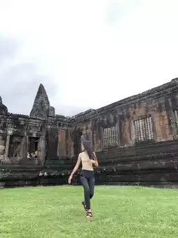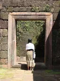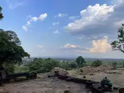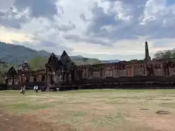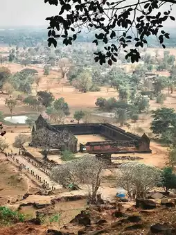 Wat Phu is considered a symbol of Champasak Province. It's a must-visit destination! Located about 40 kilometers from Pakse city, the drive there offers a chance to enjoy the natural scenery and observe the local way of life, which is a unique experience in itself. Upon arriving at Wat Phu, you'll find parking and facilities available. After paying the entrance fee, there is a shuttle service to take you up to the temple. The view is absolutely stunning! If you're visiting, you must make your way to the highest point of Wat Phu to pay respects to the Buddha statue. The climb involves a lot of stairs, some of which are quite steep. For those who don't exercise regularly, it can be quite exhausting—trust me, even as someone who works out, I was out of breath! But it's all part of the fun. The view from the top is breathtaking, and you can relax and enjoy the serene atmosphere. It's truly refreshing for the soul.