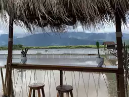 Known as the "Fuji of Laos," the refreshing experience of reaching out, standing, and taking in the lush greenery is a refreshing experience. Order a warm drink and enjoy the view. Connect with the mist, mountains, rice fields, and the breeze with cocoa and coffee, while enjoying the rice paddy views. #SouthernLaos #Cafe #RicefieldCafe