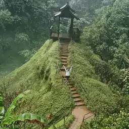 As you enter, you'll find a highlight, where many people come to take photos with the pavilion in the forest and admire the large waterfall cascading down from the cliff. If you don't want to get wet, bring a raincoat, but it won't last! 🏞️