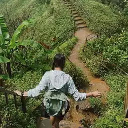 If you're confident in your shoes, we recommend walking down to the bottom of the waterfall. The view is beautiful, but it's very wet and slippery. We recommend taking your time.