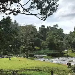 Let's not even talk about getting wet. Just standing there, exposed to the wind and current, you'll be soaked. We didn't see any sun, so we didn't see a rainbow or anything else because the water kept crashing. It must have been the wet season. 🌿💦 Imagine how much we forgot to take a beautiful photo of the pavilion because we were too busy admiring the waterfall. We only managed to capture a video. 😅