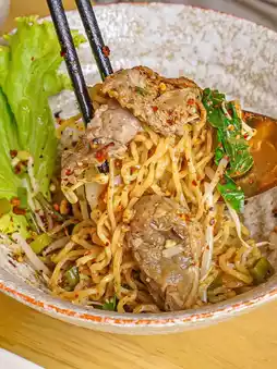 🍜 Ocha Ros, a delicious boat noodle shop located in a shop that looks like a cafe. A variety of noodles, especially the boat noodles, are so delicious that you almost don't need to add any seasoning. There is also a corner for children to play. 🥢 Ocha Ros, a noodle shop that has just opened not long ago on Nong Ho - Chang Phueak Road. If you look from the front of the shop, you might not know that this is a real noodle shop. There is a green lawn inside the shop decorated in a spacious, air-conditioned cafe atmosphere. There is a play area for children, both an indoor kid zone and an outdoor kid zone. Children can play for free. 🍜 The noodle menu includes boat noodles, clear soup and tom yum, which taste good, rich and have depth. Recommended menus such as yellow noodles with tom yum pork, dry, boat noodles with small noodles and pork, premium rib eye beef noodles, choose from egg noodles, small noodles or white vermicelli. Food starts at 65 - . 🔥 Featured menu "Hot Pot Noodles", choose both beef and pork, served as a golden hot pot set, giving a lot of money for the price included in the pot. You can order various noodle toppings. Order one set and share it with many people. 🍗 In addition to noodles, there are also fried food menus such as Grandma's fried pork, calamari, etc. There is a children's menu such as sausage fried rice, egg fried rice, spaghetti carbonara with desserts such as brown sugar toast and brown sugar grass jelly. Along with drinks, coffee, iced tea, soda, etc. 🎠 Anyone who is hungry and passes this way can stop by to work in a working space. There are plugs and free wifi. Ocharot Boat Noodles, Chiang Mai 📍 The shop is located on Nong Ho Road, opposite Chang Phueak Police Station (Nong Ho), next to 7-11 ⏰ Mon-Fri, 9:00-16:00 ⏰ Sat-Sun, public holidays 10:00-20:00 🚗 There is parking in front of the shop. 📞 Call 088-2682926, 098-3197764