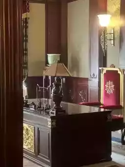 The living quarters of Puyi and Wanrong. The opium paraphernalia left on the dressing table and the bullet marks on the bedroom walls reveal the mental imprisonment of the puppet emperor.